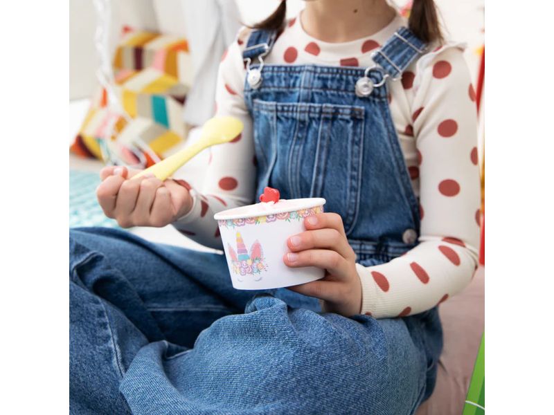 Jeśli chcesz, aby przyjęcie było dopieszczone to kubeczki do lodów z motywem Jednorożca to obowiązkowa pozycja. Opakowanie zawiera 6 sztuk i każde z nich o pojemności 150 ml. Kubeczki mają wysokość 5,5 cm. Idealnie sprawdzają się na letnie imprezy w gronie znajomych.