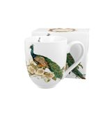 Kubek zdobiony motywem pięknego pawia, którego ubarwienie oraz upierzenie ogona niezmiennie zachwyca i przyciąga spojrzenia.