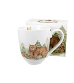 Kubek zdobiony urokliwym motywem, przedstawiającym rodzinę niedźwiedzi w ich naturalnym środowisku. Centralnym punktem kompozycji jest mama niedźwiedzica, która z czułością opiekuje się dwójką małych niedźwiadków. Ich futra w odcieniach brązu idealnie kontrastują z zielenią otaczającego lasu.