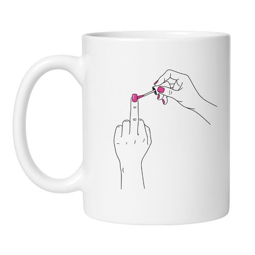 Zamów kubek „Środkowy Palec + Manicure” i miej zawsze pod ręką śmieszny kubek na prezent albo na własne poranki.
