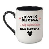 Szukasz prezentu dla dziewczyny, która ma uśmiech aniołka i charakter tornada? Ten śmieszny kubek z napisem „Jesteś śliczna, trochę popierdolona, ale śliczna” to więcej niż gadżet – to opis jej osobowości. I komplement. I przestroga. Wszystko w jednym. Kubek dla kobiety z charyzmą i lekko toksyczną energią, która rozbraja i rozwala.