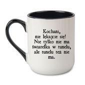 Kubek z napisem „nie ma światełka w tunelu, bo nie ma tunelu” to śmieszny prezent dla realistów, ironistów i wiecznych sceptyków. Trafiony w punkt jako kubek dla osoby, która już przestała się łudzić, ale wciąż potrafi się śmiać.