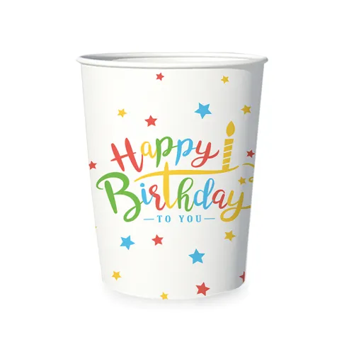 Kubeczki kolorowe urodziny Happy Birthday to You, o wysokości 9cm.