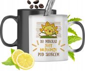 Jeśli szukasz idealnego prezentu dla bliskiej osoby, ten kubek jest strzałem w dziesiątkę. Wystarczy zalać go gorącą wodą, a jego kolor zmienia się z tajemniczej czerni na czystą biel, odsłaniając ukryty nadruk. Każdy poranek przy filiżance kawy stanie się wyjątkowy, kiedy będziesz odkrywać magiczne grafiki, które na pewno wywołają uśmiech na twarzy obdarowanej osoby.