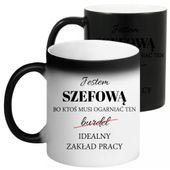 - Gdy kubek jest zimny nadruk jest praktycznie niewidoczny. Po zalaniu gorącym płynem - nadruk powoli staje się widoczny. Po ostygnięciu, kubek ponownie robi się czarny.