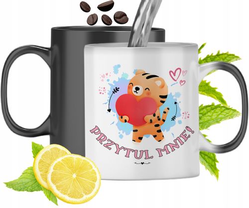 Kubek Magiczny z Tygryskiem Zmieniający Kolor z Nadrukiem ze Zdjęciem to prawdziwa uczta dla zmysłów i wyjątkowy produkt, który sprawi, że każdy poranek będzie pełen niespodzianek. Wyobraź sobie chwilę, kiedy rano sięgasz po kubek, a po zalaniu go gorącą wodą, ten niepozorny element zastawy zmienia swoją barwę — z eleganckiej czerni na czystą biel, odsłaniając ukryty tygryska z Twoim ulubionym zdjęciem. To magia, która dodaje radości do każdej chwili!