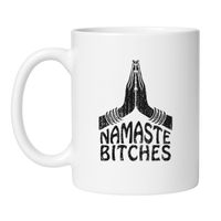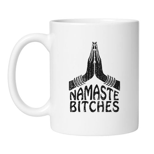 Z trwałym, dwustronnym nadrukiem – „Namaste Bitches” widać zawsze, bez względu na to, z której strony pijesz.