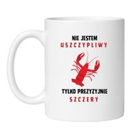 To śmieszny kubek z napisem, który będzie strzałem w dziesiątkę jako prezent dla przyjaciela, znajomego z pracy czy partnera, który znany jest z tego, że nie owija w bawełnę. Minimalistyczny design, zabawny tekst i symboliczny homar – bo szczerość czasem potrafi szczypać!
