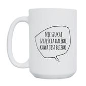 Nie trzeba podróżować dookoła świata, żeby znaleźć szczęście. Wystarczy nalać do tego kubka z cytatem o kawieporządną porcję czarnej i przestać się oszukiwać – to właśnie ona cię ratuje. Dzień po dniu. Łyk po łyku.