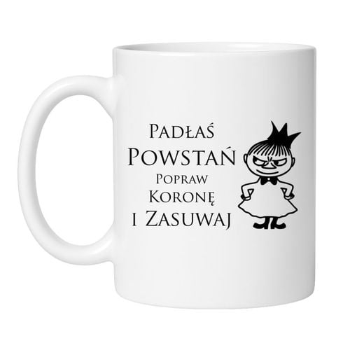To kubek dla dziewczyny z charakterem, która nie potrzebuje przypomnienia, że jest silna – ale chętnie spojrzy w oczy komuś (lub sobie) i powie: "Zasuwać czas, księżniczko."