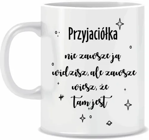 Kubek Przyjaciółki na prezent 330 ml + kartonik to perfekcyjny wybór dla tych, którzy pragną zaskoczyć swoją przyjaciółkę niezwykłym upominkiem. Jego wyjątkowy design i staranne wykonanie sprawią, że każda chwila spędzona z ulubionym napojem stanie się niezapomniana.