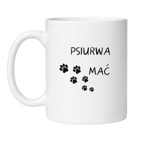 Ten kubek to uroczo bezczelne połączenie miłości do czworonogów z życiowym absurdem. „Psiurwa mać” to tekst, który rozumie każdy opiekun psa, który choć raz wdepnął w coś nieprzewidzianego, obudził się przy ogonie w twarzy albo wrócił z pracy do mieszkania przypominającego pole bitwy. Śmieszny kubek dla właścicieli psów, którzy kochają swoich pupili… i jednocześnie codziennie pytają siebie „dlaczego znowu?”.