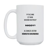 To nie kubek dla tych, co są "czasem tacy, czasem inni". To kubek dla osób, które mają jedną, konkretną emocję – i nie zamierzają się z niej tłumaczyć. Jeśli ktoś potrafi kulturalnie powiedzieć "jestem spokojna, tylko wkurwiona od lat" – to jest właśnie TO.