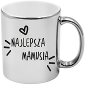 Kubek w kolorze srebrnym błyszczącym z nadrukiem (z obu stron kubka)