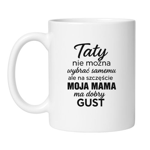 Ojca się nie wybiera. Ale mama wybrała dobrze – i niech ten kubek będzie na to dowodem. Kubek z napisem „Taty nie można wybrać, ale na szczęście moja mama ma dobry gust” to prezent z humorem, dystansem i lekkim prztyczkiem w nos, który rozbawi każdego tatę. Szczególnie takiego, który nie obraża się za żarty, tylko je docenia – jak porządny grill i święty spokój.