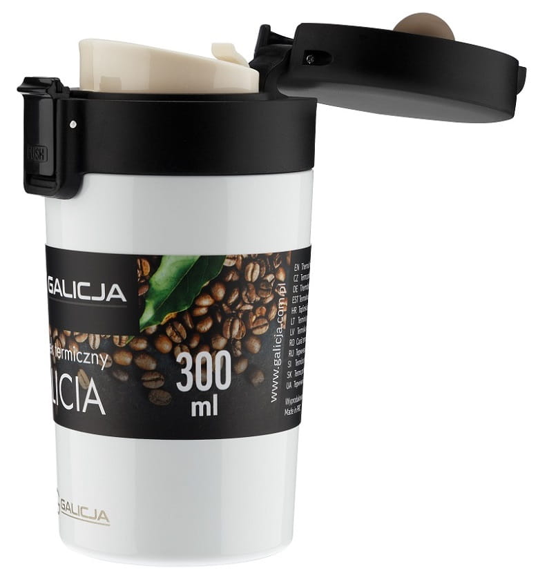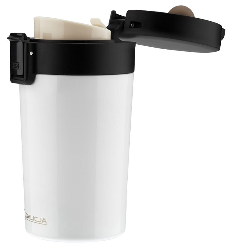 - szczelna pokrywa otwierana za pomocą przycisku została wyposażona w blokadę zapobiegającą przypadkowemu otwieraniu się kubka