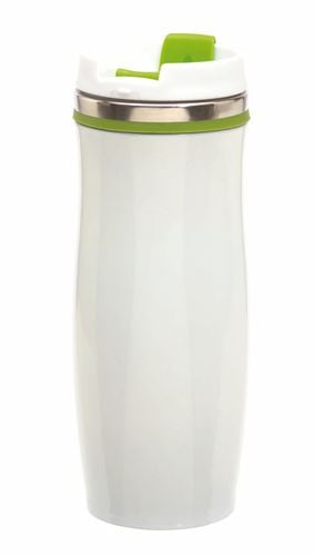 Z odkręcaną plastikową pokrywą i wbudowanym, składanym otworem do picia.