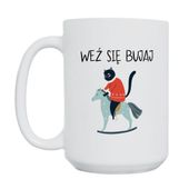 Dla ludzi, którzy cenią bezpośredniość, czarny humor i sarkazm. Kubek „Weź się bujaj” to codzienny znak, że masz dystans do siebie i świata – i chcesz go pokazać wszystkim, którzy piją z Tobą kawę w biurze czy w domu.
