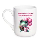 Masz dość nudnych prezentów? Ten śmieszny kubek z żabą, balonami i babeczką powie wszystko za Ciebie: życzę Ci po prostu wszystkiego żajebistego. Idealny kubek na urodziny, imieniny, walentynki czy po prostu bez okazji, gdy chcesz, żeby obdarowany parsknął śmiechem przy porannej kawie.