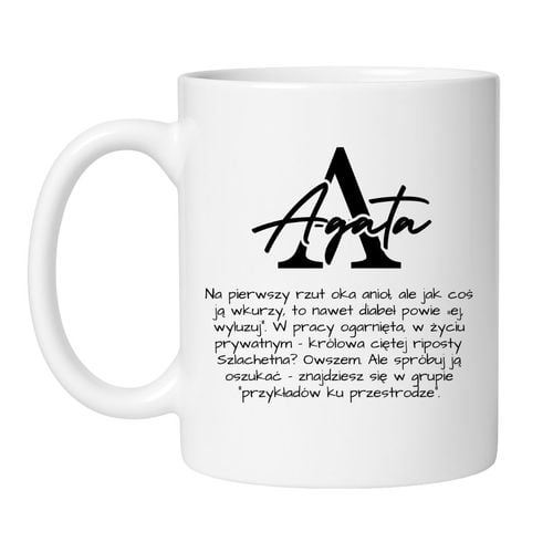 To nie jest kubek dla każdego. To kubek idealny dla Agaty, która łączy w sobie anielską cierpliwość z diabelską ciętą ripostą. Dla kobiety, która w pracy potrafi ogarnąć każdy chaos, a w życiu prywatnym zawsze powie to, czego inni boją się wypowiedzieć na głos.