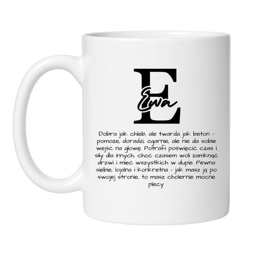 Kubek powstał dla kobiet pewnych siebie, lojalnych, konkretnych, które potrafią pomagać i wspierać, ale wiedzą też, kiedy postawić granice. Jeśli Twoja Ewa to połączenie empatii z twardym charakterem, to będzie idealny kubek personalizowany dla silnej kobiety.