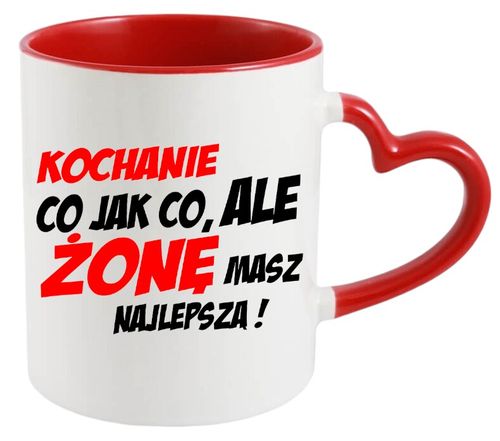 Kubek w kolorze białym z czerwonym uchem i wnętrzem