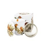 Kubek zdobiony motywem barwnego dudka z dumnie postawionym czubem na głowie. Całośc utrzymana w ciepłych brązowych barwach.