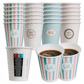 Ten zestaw 50 kubków papierowych o pojemności 300 ml wyróżnia się solidną konstrukcją i precyzyjnym wykonaniem, które gwarantują niezawodne trzymanie ciepła lub chłodu napojów przez dłuższy czas. Z nadrukiem dodającym elegancji, idealnie sprawdzają się podczas podawania kawy, herbaty czy zimnych soków, zapewniając komfort i styl na każdym spotkaniu.