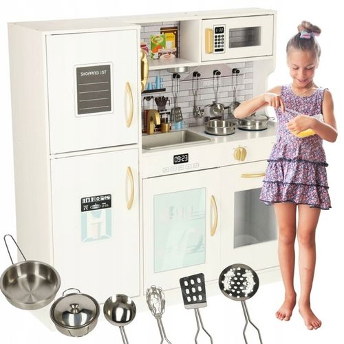 Wykonana z solidnych materiałów, takich jak wysokiej jakości MDF, drewno i bezpieczne tworzywa sztuczne, kuchnia ta gwarantuje długotrwałą zabawę w bezpiecznych warunkach. Jej wytrzymała konstrukcja zapewnia spokój rodzicom i pozwala dzieciom na beztroską eksplorację.