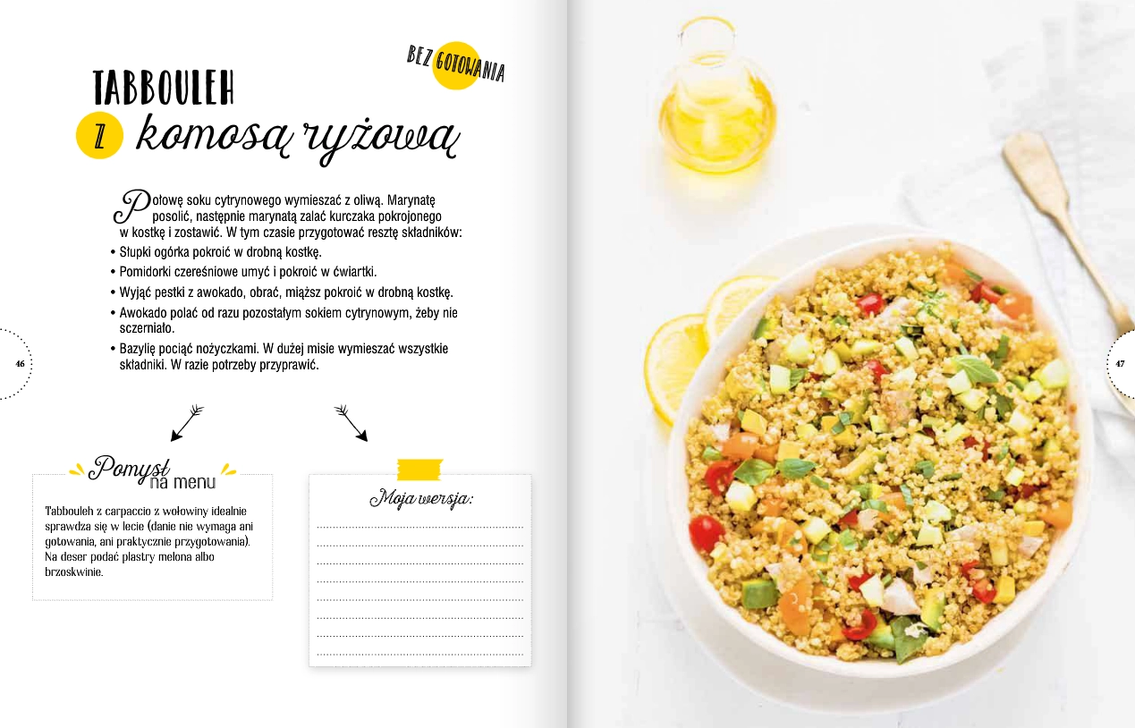 Jak w ciągu jednego dnia weekendu przygotować 5 kolacji? To niemożliwe? Ależ skąd! To naprawdę łatwe. Raz w tygodniu warto kupić większą ilość podstawowych produktów, które można przechowywać, wykorzystywać je przez cały tydzień i gotować ekspresowe kolacje według przepisów podanych w książce. Wystarczą niewielkie zmiany w organizacji pracy w kuchni i można kompletnie zrewolucjonizować gotowanie! Odbiorcy: • osoby zabiegane, które chcą zaoszczędzić czas oraz pieniądze, • wszyscy, którzy dbają o zdrowe odżywianie. Dlaczego warto sięgnąć po tę książkę: • zawiera metody i porady dotyczące ekspresowego gotowania na zapas, • przybliża organizację przygotowania podstawowych składników potraw, które następnie można przechowywać, podgrzewać i modyfikować w kolejne dni tygodnia, • zawarte w książce przepisy są łatwe, oryginalne i gwarantują pyszne potrawy, które zachęcają do rodzinnych posiłków.