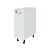 Korpus wykonany jest z płyty wiórowej laminowanej o grubości 18 mm z frontami z płyty MDF foliowanej, frezowanej. Wewnątrz znajduje się jedna półka luźna. Korpus stoi na 2 nóżkach o regulowanej wysokości (w zakresie 9,5-16,5cm). Nóżki wykonane są z wytrzymałego tworzywa, mają one specjalny kształt umożliwiający jednoczesne podparcie boków i wieńca dolnego, co znakomicie poprawia wytrzymałość całej szafki. W zestawie dołączony jest kpl. klipsów umożliwiający montaż cokołu dolnego.