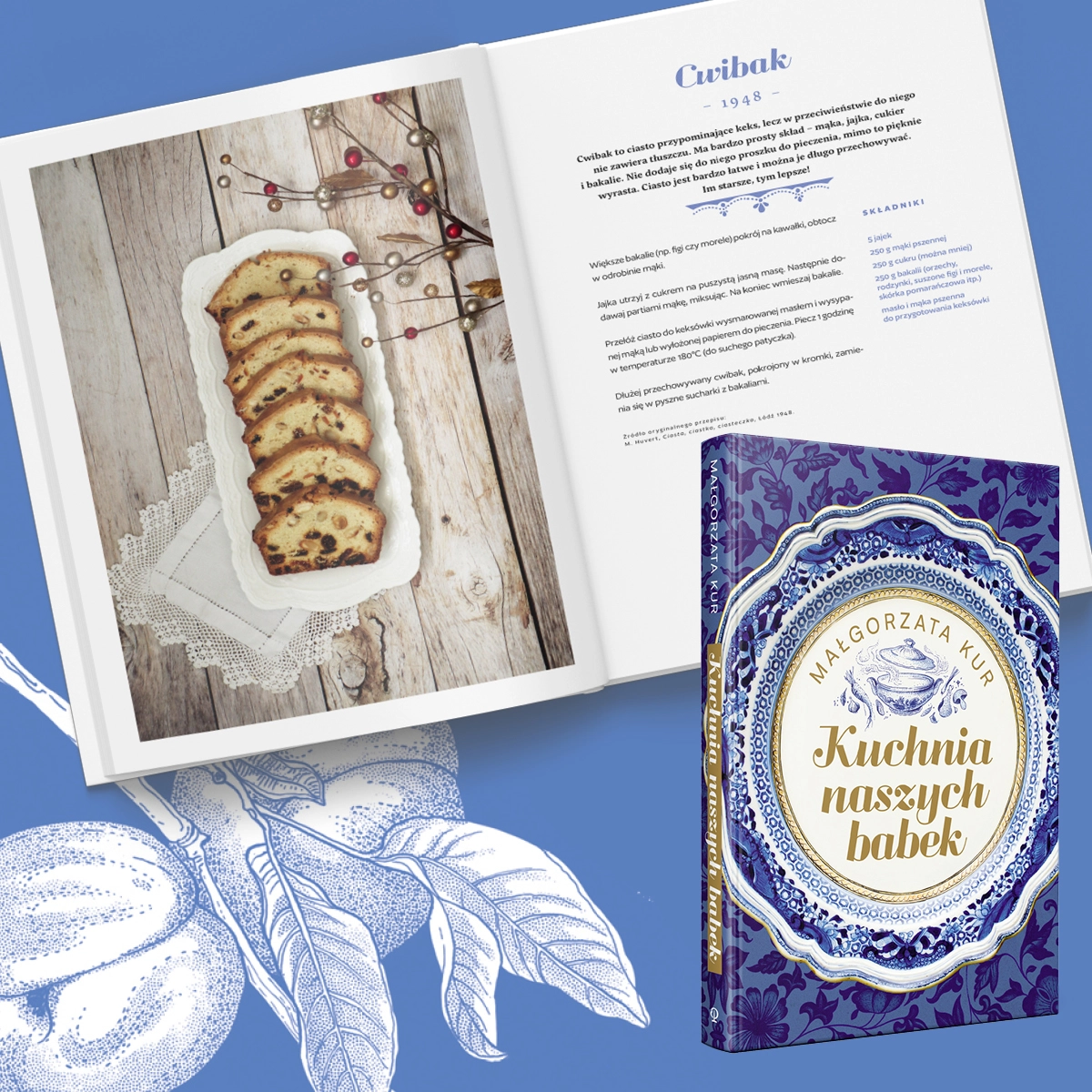 Przyjmij zaproszenie do kuchni sentymentalnej i sięgnij po przepisy z duszą! Historii nie budują tylko wielkie zdarzenia, ale przede wszystkim codzienność. Zwykłe czynności, zwyczajni ludzie oraz przedmioty, którymi się otaczali. Zanurzmy się wspólnie w tej małej historii – zapraszamy do stołu zastawionego starą porcelaną i pysznym tradycyjnym jedzeniem. Posmakujmy dań, które przeniosą nas do kuchni naszych babek, albo przywołają dawne rodzinne wspomnienia. Odkryjmy na nowo zapomniane smaki, od wieków obecne w rodzimej tradycji. Ta książka jest wyjątkową propozycją dla każdego, kto kocha klimat retro i myśli z nostalgią o przeszłości. Prezentuje polskie przepisy z okresu od połowy XIX do połowy XX wieku. Odtworzono je z zachowaniem wszystkich składników i – jeśli to tylko było możliwe – również dokładnych proporcji. Autorka podaje współczesne opisy przygotowania potraw oraz aktualne miary i wagi (niekiedy przeliczane z funtów, łutów czy kwaterek). Wyboru dań dokonała tak, aby wykorzystać w nich produkty sezonowe, lokalne i łatwo dostępne. Małgorzata Kur – absolwentka polonistyki i grafiki wydawniczej na ASP w Łodzi. Autorka kilkunastu książek dla dzieci i młodzieży, wydawanych w Polsce i za granicą, laureatka konkursów literackich. Od 2018 roku prowadzi bloga kulinarnego Pularda. Stół sprzed wieków, na którym odtwarza przepisy ze starych (głównie przedwojennych) polskich książek kucharskich. W wolnych chwilach oczywiście gotuje, a oprócz tego czyta reportaże, uprawia balkonowy ogród, zbiera leśne poziomki i grzyby oraz dziwne kamienie z synkiem Guciem.