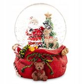 Ta wyjątkowa kula śnieżna z brokatem zachwyca precyzyjnym wykonaniem i dbałością o każdy detal, tworząc atmosferę niepowtarzalnej elegancji. W środku delikatna scena z mikołajem i reniferem, otoczona wirującymi płatkami brokatu, idealnie oddaje urok świąt, dodając wnętrzu ciepła i blasku, który przetrwa lata.
