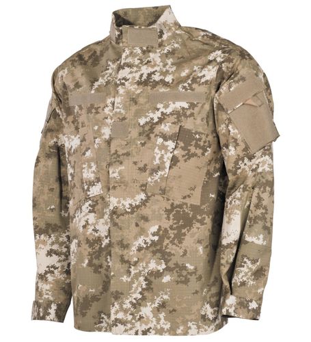 Przygotowana z myślą o pasjonatach outdooru, kurtka polowa ACU Rip Stop vegetato desert łączy w sobie nowoczesny design z militarnymi akcentami, które przyciągają wzrok. Jej unikalny, pustynny wzór kamuflażowy sprawia, że jest doskonałym wyborem na wszelkie wyprawy w terenie, a także na codzienne wyjścia.