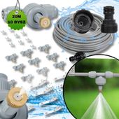 Po podłączeniu do wody z dysz będzie rozpylana delikatna orzeźwiająca mgiełka. Pozwala ona schłodzić otoczenie o około 10°C. Dodatkowo odstrasza różnego rodzaju insekty i owady. Woda z dysz będzie się powoli sączyć, co nie doprowadzi do za dużego zużycia wody.Całość można podłączyć do zwykłego węża ogrodowego poprzez dołączoną do zestawu szybkozłączkę. Do samej szybkozłączki dodajemy też filtr. Pozwala ona na dłuższe życie dysz poprzez mniejsze osadzanie się kamienia oraz zabezpieczy dysze przed niechcianymi drobnymi brudami z wodociągów lub studni.