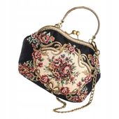 Ta ręcznie wykonana torebka wieczorowa Kiss Lock w stylu vintage zachwyca precyzyjnym rzemiosłem, łączącym wytrzymałe płótno bawełniane z solidnym metalowym wykończeniem. Jej unikalny design z antyczną ramą i zapięciem na zamek pocałunkowy w odcieniach czerni nawiązuje do lat 1920-1970, idealnie uzupełniając wieczorowe suknie i dodając subtelnego, ponadczasowego uroku każdej stylizacji.