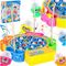 Dodatkowo, aby utrudnić zadanie, kuleczki można przeprowadzić przez labirynt, obracając zabawką w różne strony.