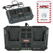 Oryginalna podwójna ładowarka do akumulatorów litowo-jonowy o napięciu 18 V i natężeniu ładowania 4 A. Przeznaczona do ładowania akumulatorów zasilających ogrodowe urządzenia akumulatorowe firmy NAC.