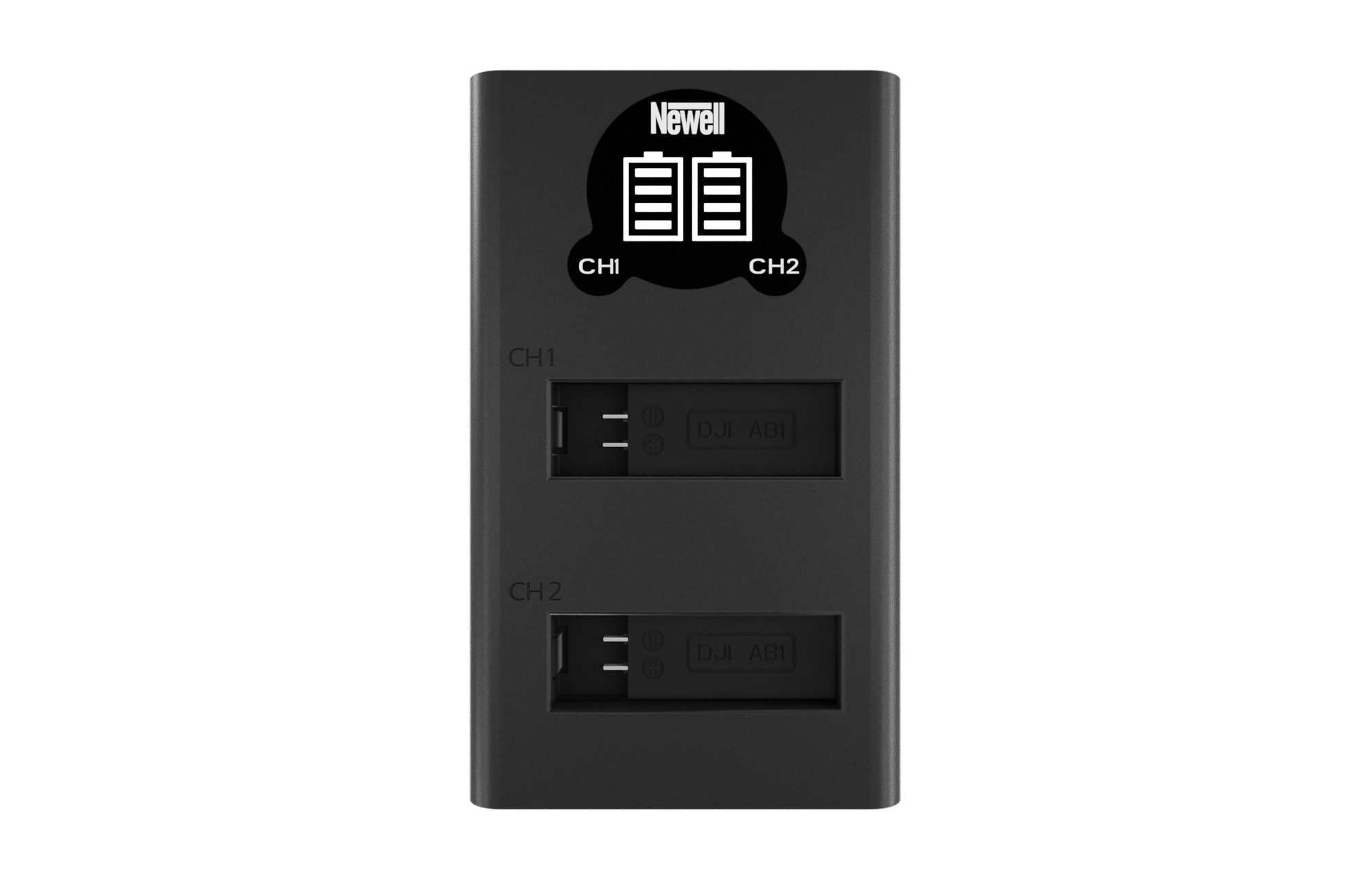Ładowarka kompatybilna jest z systemowymi akumulatorami DJI, akumulatorami marki Newell oraz innymi zamiennikami.
