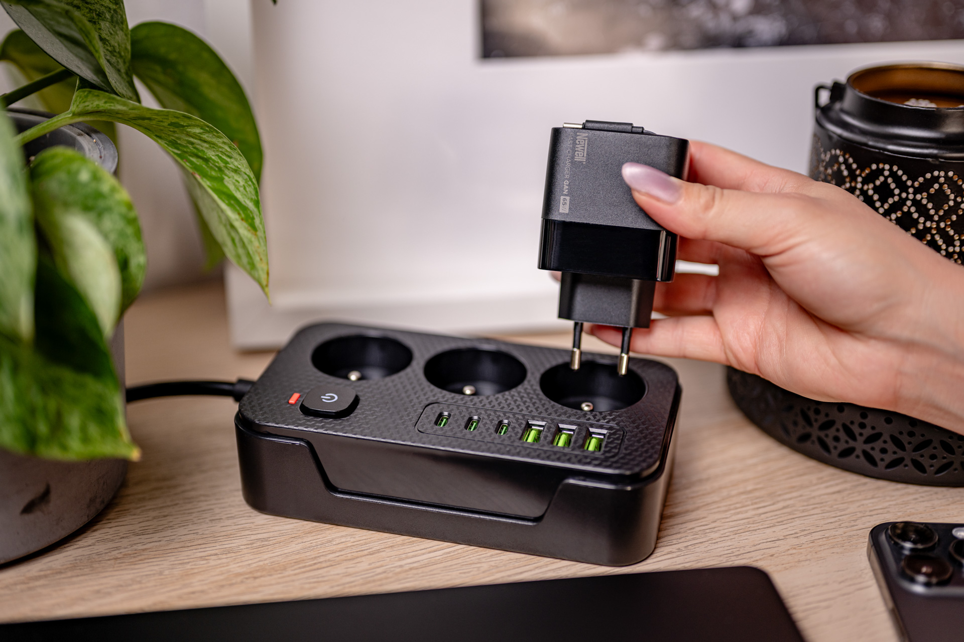 Ładowarka sieciowa Newell GaN 65 W LCD - EU to niezastąpiony towarzysz podróży. Kompaktowe wymiary, niska waga i zintegrowany przewód z płynną regulacją długości sprawiają, że bez trudu zmieścisz ją w torbie, plecaku czy nawet kieszeni. Możliwość jednoczesnego ładowania trzech urządzeń eliminuje potrzebę noszenia kilku różnych zasilaczy, a szeroki zakres napięcia wejściowego (110–240 V) zapewnia odpowiednią kompatybilność również podczas podróży zagranicznych. Niezależnie od tego, czy pracujesz zdalnie w kawiarni, czekasz na lotnisku, czy przemierzasz trasę pociągiem – masz pewność, że Twoje urządzenia zawsze będą gotowe do działania.