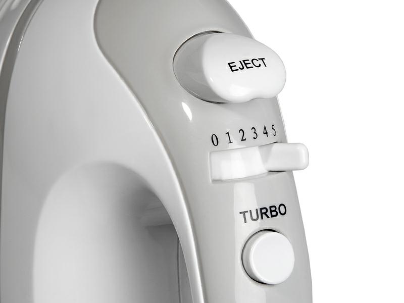 Mikser z misą obrotową MRK002M w eleganckim, biało-szarym kolorze stanowi doskonałe uzupełnienie w każdej kuchni. Przydatny dla osób lubiących domowe wypieki. Wyposażony został w 2 końcówki do ubijania i 2 końcówki do mieszania/wyrabiania ciast. Urządzenia można używać w połączeniu z misą 3,5L jak również osobno. Model posiada 5 prędkości pracy oraz funkcję TURBO. Jest wygodny w użyciu, praktyczny i wytrzymały dzięki czemu można go używać bez ryzyka awarii.