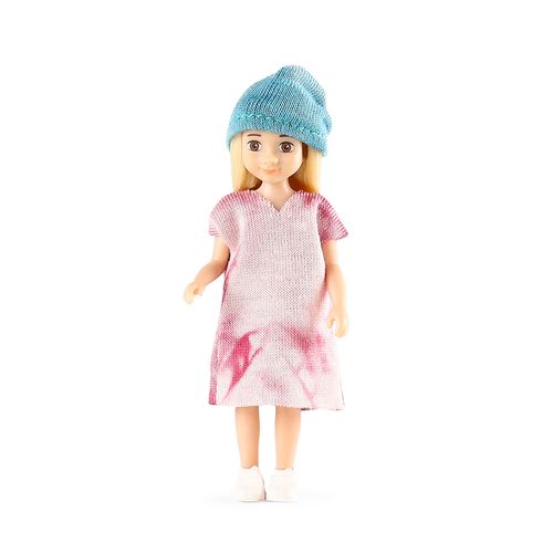Zestaw z lalką od Lundby. Lalka do domku dla lalek z trzema różnymi fryzurami, sukienką, kapeluszem, koszulką, spódnicą i szortami. Lalkę można dowolnie przebierać codziennie wymyślając inne stylizacje.