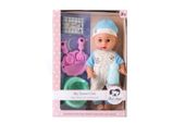 Uroczy bobas, który pije z butelki i siusia do nocnika. Dodatkową atrakcją są 6 funkcji dźwiękowych, dzięki którym zabawa lalą jest jeszcze przyjemniejsza. W skład zestawu wchodzi lalka o wysokości około 30 cm, ubrana w mięciutkie dzianinowe ubranko w kolorze biało-niebieskim oraz akcesoria: