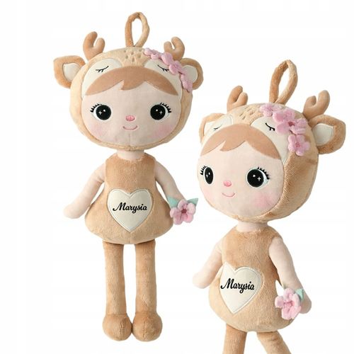 Możliwość personalizacji poprzez umieszczenie imienia dziecka czyni tę lalkę absolutnie wyjątkową pamiątką na całe życie. Wysokiej jakości folia flock o miękki strukturze zamszowej zapewnia trwałość nadruku oraz przyjemne doznania dotykowe, tworząc niepowtarzalną więź między dzieckiem a jego przytulanką.