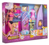 Wymiary | - lalka ok. 30 cm x 10,5 cm x 4,5 cm, - siatka do siatkówki ok. 20 cm x 26 cm x 6,5 cm, - deska do surfowania ok. 24,5 cm x 7,5 cm x 0,5 cm, - kajak ok. 30,5 cm x 7,5 cm x 4 cm, - strój na deskę i kajak o długości ok. 11 cm, - wiosło ok. 28 cm długości, - opakowanie ok. 44,5 cm x 32 cm x 6 cm. |