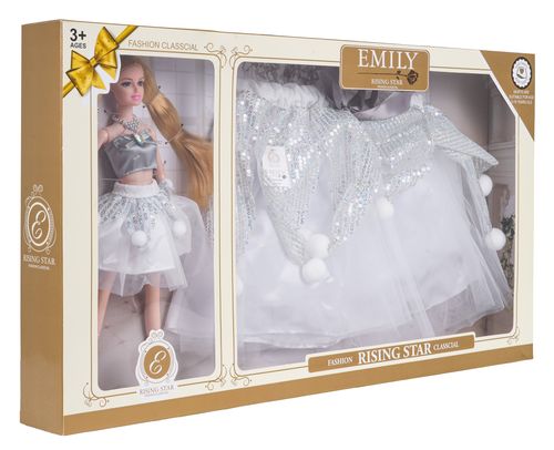 Wymiary | - lalka ok. 31 cm x 15 cm x 4,5 cm, - spódnica w pasie ok. 24,5 cm, długość ok. 26,5 cm - opakowanie ok. 60 cm x 33 cm x 6,5 cm. |