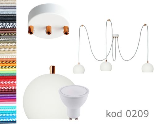 LAMPA SUFITOWA WISZĄCA PAJĄK 3 kula 12cm Biała hamulec 09 + żarówki GU10.
