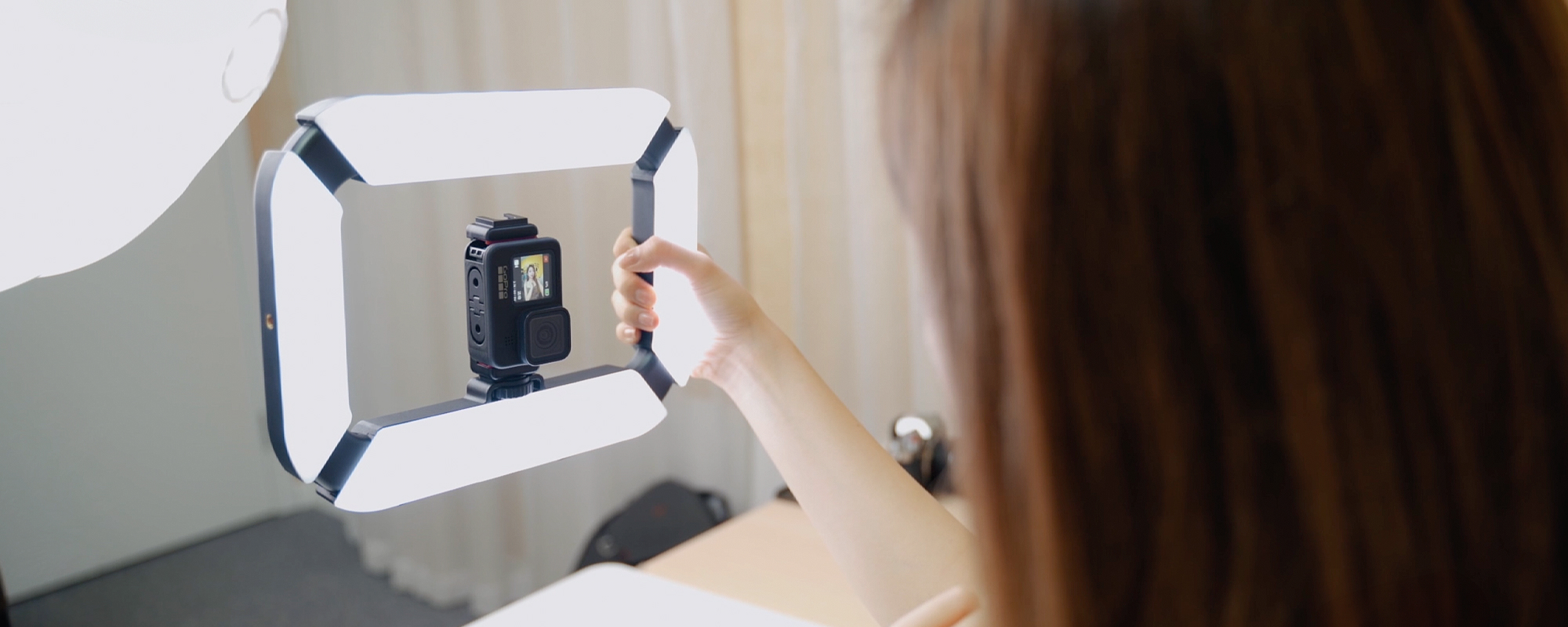 to coś więcej niż zwykła lampa. Dzięki unikalnej konstrukcji, która umożliwia montaż smartfona lub aparatu w centralnej części panelu zyskujesz równomierne oświetlenie i jeszcze większy komfort pracy „z ręki”. Lampa może pełnić funkcję ergonomicznego uchwytu. To idealne rozwiązanie do fotografii produktowej, portretów, vlogów, transmisji na żywo, a także do… oświetlania fotobudki, w tym tej obrotowej, umożliwiającej nagrywanie w 360º. Urządzenie oferuje aż 5 punktów montażu. Akumulator o pojemności 8000 mAh zapewni nawet do 10,5 h pracy.