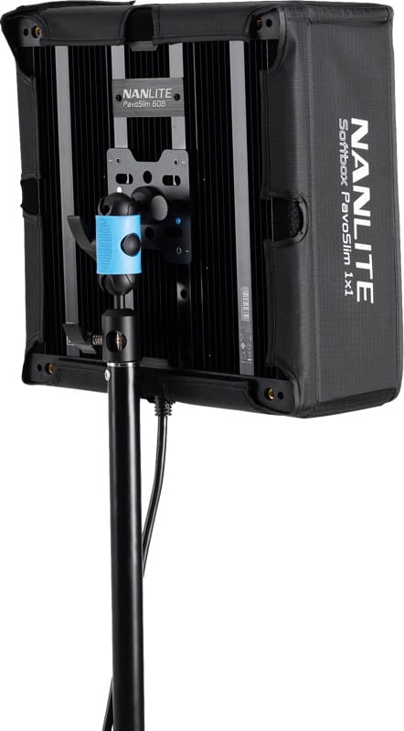 Każdy element PavoSlim 60B/120B został zaprojektowany z myślą o szybkim wdrożeniu, ponieważ na planie liczy się każda minuta. Nawet akcesoria zostały zaprojektowane zgodnie z tą samą filozofią łatwej i szybkiej konfiguracji, umożliwiając twórcom łatwe ukończenie instalacji w ciągu jednej minuty. Z tyłu urządzenia znajduje się wiele gniazd do instalacji, co pozwala na elastyczne dostosowanie do różnych sytuacji. Jednostka sterująca została zaprojektowana z płytką szybkiego zwalniania, która jest kompatybilna z zaciskiem szybkiego zwalniania (opcjonalnym), który jest również używany w urządzeniach z serii Forza II (nadaje się do statywów oświetleniowych i kratownic). Jednostkę sterującą można również zawiesić na statywie oświetleniowym za pomocą paska.