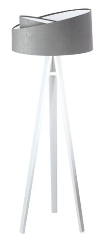 Lampa stojąca GEMSTONE jest produktem polskim zaprojektowanym z myślą o uzupełnieniu aranżacji w oświetlenie, które podkreśli styl naszego wnętrza. Lampa na trójnogu to doskonały wybór do salonu, sypialni, ale także do biura, gdzie będzie pełnić funkcję oświetlenia, ale też dekoracji. Ta lampa podłogowa ma podstawę wykonaną z naturalnego drewna sosnowego pomalowanego na biały kolor, dzięki czemu jest ona wytrzymała i stabilna. Biała kolorystyka drewna sprawia, że lampa wspaniale wkomponuje się w skandynawskie i nowoczesne wnętrza. Prezentowana lampa stojąca ma asymetryczny abażur zrobiony z tworzywa PCV pokrytego welurową tkaniną o szarej barwie. Wnętrze lampy ma biały kolor. Zaletą lampy stojącej GEMSTONE jest jej duża odporność na promieniowanie UV, dzięki czemu nie traci ona swojego koloru nawet po długim czasie użytkowania. Do lampy pasują żarówki E27 o maksymalnej mocy 60 Watt - można także zastosować żarówki LED. Lampa sprzedawana jest bez żarówki.